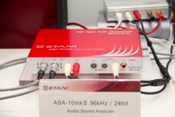 エタニ電機は、オーディオアナライザー「ASA-10mkII」を出展。小型筐体でUSBバスパワーで駆動するモデルで、96kHz/24ビットに対応。スイープ周波数特性やリアルタイムスペクトラムアナライザー、グラフ印刷、タイムアライメント調整機能、インパルス応答収録機能などを備える。