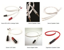 トップエンド・シリーズ(20万円以上〜)をはじめ、ミドルクラス・シリーズ(6万円〜)、そしてC/P型回エントリー・シリーズ(1万円〜)と幅広いラインアップを揃えている。取り扱い第一弾としてはインターコネクトケーブル「SARUM」(RCA-RCA/1m・税込231,000円)やスピーカーケーブル「SARUM SPEAKER CABLE」(ペア・1.5m/税込236,250円)などが紹介されている。ラインナップはこちら。