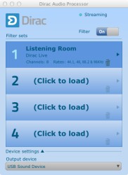 加えて、計測して補正をしたデータは同梱の「Dirac Audio Processor」で4つまで保存することも可能だ。つまり試聴環境が大きく変化しない限り、次回からは再生ソフトウェアとこのDirac Audio Processorを立ち上げて任意のプリセットを選んで再生するだけで、常に最適な環境で音楽が楽しめるのである。