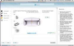 現時点では全て英語でのユーザーインターフェースとなっているが、使い方は簡単だ。必要となるのは計測用マイクとUSBオーディオインターフェース、そしてDirac Liveをインストールしたパソコンである。これらを接続したのち、Dirac Liveを起動。あとは画面に表示される順番に設定を行っていけばよい。マイクのセッティング位置なども画面上で案内が表示されるので、迷うこともないだろう。最後に計測信号を再生し、マウスで補正を行うという直感的な操作となっている。