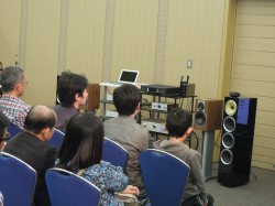 当日のデモのシステム総額が約55万円であることを受け、「10代の宇多田ヒカルが自宅に来ると思えばどうですか? 55万円はお安く感じませんか?」といったユニークな切り口でハイレゾの音の良さを語っていった。
