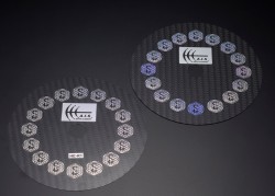そんな同ブランドの製品の効果を最も手軽に体験できるアイテムとして登場したのが、今回発売されたCD/DVDディスクスタビライザーだ。カーボンファイバー素材をベースとし、既発売の「ST-X 3D Quantum Sticker」を片面に16枚添付したタイプが「HE-R1(PRO)」(28,000円/税抜)で、両面に各16枚ずつ添付したタイプが「HE-R1(PRO X)」(56,000円/税抜)となっている。なお同製品はトレイ式のCD/DVDプレーヤーのみでの使用に限定されているので注意が必要だ。