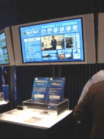同社のブースは、、来春スタートする110度BS/CSのepサービスに対応したハードウェアと、具体的なコンテンツの紹介にも力を入れている。セットトップボックスに内蔵される40GBのハードディスクのうち、半分の20GBはコンテンツ提供側が利用し、残りの半分はユーザーが番組録画などに利用する仕組み。このシステムを導入することによって、STBの価格を大幅に抑えることができるという。(山之内正)