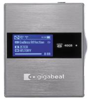 gigabeat G40は、HDD40GBタイプ。ほかに、5GB、20GBがラインナップ。好みに合わせて、ハードディスクの容量が選べる。gigabeat G40では音楽データのほかに、デジタル写真やビジネスデータも余裕で記録できる。本体素材には、軽量で高級感のあるアルミ合金を採用。大容量HDDを、薄さ12.7mm、容積87cm3、軽さ138gの超コンパクトボディにすっきりと収納したのも魅力。連続再生時間は内蔵リチウムイオン充電池で、約11時間を実現した。オーディオデータをブックマークに登録すれば、登録した曲だけを再生することも可能。