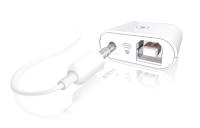 本機は、iPodのDockコネクターをUSBとAudioラインアウト(3.5mm)に変換するアダプター。小型・軽量なので持ち運びに便利だ。