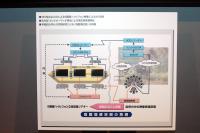 「LC-65GE1」を6台使った面白い展示も見られた。「6画面ハイビジョン映像&1ビット8ch音場空間」と名付けられた同展示は、早稲田大学と共同で開発した技術によるもの。視聴者の前後左右と斜め前45度に設置されたディスプレイに、各方向に見える映像を表示するとともに、8方向に設置されたスピーカーから各方向から聞こえる音を再生するというもので、撮影現場のそのままの臨場感を体験することができる。