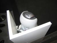 ひじょうにゆっくりと動き出す。2km/hという人間の自転車走行でも不可能な低速走行も可能だ。無線による双方向データ通信を使って、現在の状況をPCに送り出し、遠隔操作で自由に動きまわる。頭の部分にはCCDカメラが仕込んであり、遠隔操作するPCからモニターできる。