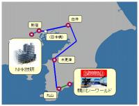 今回のスーパーハイビジョンの生中継実験では、千葉県の鴨川シーワールドと世田谷区砧にあるNHK技研との約260kmを光ファイバーで結び、鴨川シーワールドから映像と音をリアルタイムでNHK技研に送信する。スーパーハイビジョンとしては初めて2台のカメラの映像をリアルタイムで切り替えて伝送される。