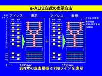 ALIS方式の電極構造を採用し、より大型なパネルのために開発した技術がe-ALIS方式だ。リブ構造は格子状で、駆動電極数はALISと同様に半分の数でプログレッシブ駆動をJちうげんする。セル構造を見直し、開口率を従来比で1.4倍程度に高めたのが特徴で、大型ながら輝度が高い点が特徴になる。このパネルは、Woooの55V型モデルに搭載されている。
