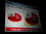 はじめに牛丸氏は日本国内における薄型大画面テレビの市場動向について同社調べのデータを紹介。42V型以上の薄型大画面テレビ市場ではプラズマと液晶が「7対3」の比率であることを示した。特にプラズマテレビでは2006年1月時点で同社のVIERAが70%に達するシェアを獲得していると語り、「薄型大画面テレビはビエラと言っても過言ではない」と強調した。