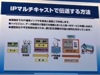 「IPマルチキャスト」は、IP通信インフラを放送と通信で供用することで、視聴するテレビ放送とインターネットを1本の有線回線で実現するもの。中継地点であるIP再送信設備でデータに暗号化をかけることでセキュリティの強化を図っているほか、誤り訂正情報を付加することで高品位な伝送を可能にする。