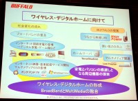 また、山口氏は「デジタルホームをワイヤレスで楽しむ『ワイヤレスデジタルホーム』を実現する際、欠けているものがあった」と指摘。「11gでは実効速度が30Mbps程度で、ハイビジョン映像を伝送するにはやや力不足。今回、NFINITYという新たな提案により、ワイヤレスデジタルホームをさらに加速させたい」と続けた。