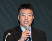 発表会の冒頭、挨拶した同社常務取締役の山口英利氏は、「私事になるが、これまで自宅ではネット環境がADSLで、地上デジタルも視聴できなかった。まだデジタルホーム環境になっていなかったわけだが、今度一戸建てに引っ越しすることが決まり、光ファイバーと地上デジタル環境の導入を決めた。私のように、これからネットワーク環境を構築される方は、デジタルホーム環境を調えることになるはずだ」と現状を分析。また、「当社ではこれらのデジタルホームを支える技術として、使いやすさを高める『AOSS』、大量のコンテンツを蓄える『TeraStation』、マルチメディアをネットワークで楽しめる『LinkTheater』などを提案してきた」と同社の取り組みを振り返った。