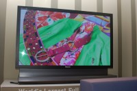 会場の一角ではフルHDパネルを搭載した103インチPDPが展示され、リテーラーたちの注目を集めている。本機が商品として完成され、欧州で公開されるのはIFA2006が初めての機会ということもあり、展示内容の中でもひときわ注目を浴びていた。