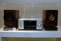 メインの展示ブースでは“ウッドコーンスピーカー”を大々的にアピール。11月上旬に発売予定の最上位機「SX-WD500」を中心に、これまでのラインナップをズラリと展示した。また研究試作品としてウッドコーンの30cmユニットやカナル型イヤホンなども展示した。こちらは「今のところ製品化の予定はない」とのこと。