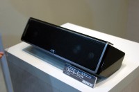 ここ最近人気が高まっているスピーカー内蔵のシアターラック。ビクターは同社技術を結集したモデルを参考出品した。ラックの両端にウッドコーンのユニット/トゥイーター、ラック中央にサラウンド機能√4を搭載したDDスピーカーという構成。こちらも「あくまで参考出品」とのことだが、インテリアにマッチしそうな外観は完成度が高い。