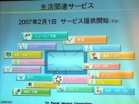 同社の役割は、ユーザーとコンテンツプロバイダーの間に入り、快適なサービスを提供するための環境を整備することである。サービスのロードマップとしては、2007年2月1日に画像とテキストによるサービスを開始。その後2007年度中にはストリーミングVODサービス、2008年度中にダウンロードサービスなどを順次開始していく予定だという。DRMは家電向けの独自DRM「マリーン」を標準搭載する予定。大野氏は、「『アクトビラ(acTVila)』は“TV”を介したネットワークへの重要な『トビラ』として、“active”&“alive”な情報サービスの提供を促進し、インタラクティブな“village”を創造していく、という意味が込められている。安心で安全な新しいテレビの楽しみ方を提供していくと共に、オープンプラットフォームにより多様なサービス事業者の参入を促し、市場を創造していきたい」と抱負を述べた。