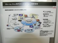 Blu-ray Discの説明文には、レコーダーの部分に「MPEG-2で圧縮されたハイビジョンコンテンツをH.264/AVCに変換することで、録画時間を2倍以上にでき、BDの大容量をさらに活かすことが可能」とあり、レコーダーへのH.264エンコーダー内蔵を示唆。説明員も「長時間録画へのユーザーニーズは多い。対応するビデオコーデックLSIがあれば、BDレコーダーでも当然やるべきだ」とコメント。同社のBDレコーダーに、H.264/AVCエンコーダー/デコーダーが搭載される可能性が高まった。