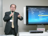 続いて行われたDVDレコーダーの新製品紹介の段では、はじめにパイオニア(株)の新しいDVDレコーダーが同社の宮崎武雄氏によって紹介された。同社の2006年秋冬新製品は、ハイビジョン録画時代の到来に合わせて“大量録画時代の快適操作”をテーマに開発が行われ、増設HDD対応、デジタル放送の視聴をシンプルに楽しむためのスマートリモコン、加えてハイビジョン表示対応のGUI搭載など、魅力的な機能を盛り込んでいる。宮崎氏は、同社製品の代表的な新機能について、実機「DVR-DT95」によるデモンストレーションを交えて詳しく紹介を行った。