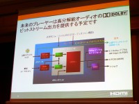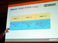 同氏は、「『HDMI1.3対応』ということが高い品質を表すものとして認知されていくだろう」と述べ、HDMI1.3対応機器が2007年中頃には多く登場してくるのではないかと語った。会場ではドルビーデジタルプラスやドルビーTrueHDの再生デモも実施。その再生能力の高さをアピールした。