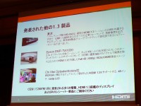 また最近では、ポータブル製品のHDMI採用も目立ってきており、ソニーのビデオカメラや東芝のノートPC、サムスンのデジカメなど、多くの製品がすでにHDMI端子を採用しいていると説明した。