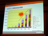 「HDMIは多くの種類の機器に搭載できるのが特長である」と語る同氏は、HDMIを搭載するPCが急増していることもアピールし、これらの要因として、次世代ディスクドライブ搭載モデルが増えたことや、映像をテレビへ出力することが多くなったことを挙げた。