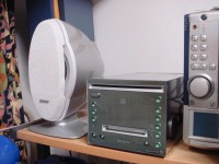 NAS-M70HDは仕事で使っているパソコンデスクに設置してテストすることにした。いままではソニーのミニコンポ、“キューブリック”「CMT-C7NT」(2001年12月発売)を使用していたので、そちらと交換することにした。