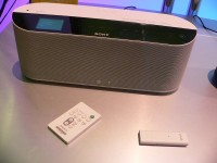 音楽関係の機器で展示されていたユニークな製品が「VAIO WA Wireless Digital Music Streamer」だ。これは、無線LANを使ってPCに保存されている音楽とインターネットラジオの音楽を再生するラジカセのような製品だ。音楽CDなどの外部ディスクを読み込ませる機能はなく、あくまでも無線LANを使って再生する製品でネットワーク部分はDLNAに準拠する。MP3やWMAなどの形式はもちろん、AACやATRAC3などDLNAに対応していない音楽ファイルもサーバーとなるPC側でリアルタイムで変換して配信を行える。バッテリーは約4時間駆動で、家庭内で持ち運んで、好きな場所でPCの音楽ライブラリを楽しむ使い方が可能となる。