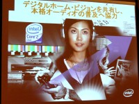続いて、本機にチップを供給したインテル(株)マーケティング本部 本部長の阿部剛士氏が、オンキヨーとの協業関係について説明。HDC-1.0はアイドリング状態で22〜23dB程度の静音性を実現しているが、これはチップ面積の小さいCore 2 Duoを搭載したことが寄与しているほか、阿部氏によると筐体の設計にもインテルが協力を行ったのだという。「インテル筑波オフィスにある熱対策・静音化の研究施設『筑波デスクトップ・ラボ』で、熱および音響評価と解析、マザーボード評価を行い、静音化に貢献できた」。