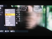 色温度を低にした分、黒レベル(ブライトネス)を+3に上げた。「ディテール」は比較的小振幅の映像信号のエッジを急峻にする機能で、オンにすると見かけ上の鮮鋭度は上がるが、俳優の表情が硬くなる。引きのシーンで背景がざわついた感じになり、遠近差が薄れて映像の魅力が後退する。これは鮮鋭度の足りないソースを補強する機能で本作のような高画質ソフトに使うべきでない。同様の機能と思われるが、LTI(ルミネセンス信号の鮮鋭度を高める)を中にした方が好結果を得られた。
