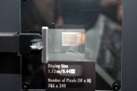 エプソンは多種多様な小型液晶デバイスを展示。「超高精細低温ポリシリコン液晶」は、その名のとおり高い解像度を実現。サイズは非常に小さいが、解像度は白黒で1,700ppi、カラーで800ppiを達成している。また、「超高視野角技術」を採用したアモルファスシリコン液晶は、上下左右で180度の視野角を実現。デジカメなどへの搭載を見込む。