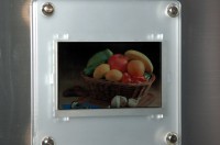 三菱電機は、屋外用の超高輝度LCDをメインに展示。輝度は1,500cd/m2で、VGAモデルは10.4/12.1型を、XGAモデルは12.1/15.0型を訴求していた。さらに、ワイドタイプのLCDもアピール。800×480、1,280×800の2種類の解像度を用意し、画面サイズも様々なものが展示されていた。