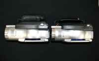 両機種とも、8cmBD/DVDドライブを搭載。BD-RE/-RおよびDVD-RAM/-RW/-Rの5種類の8cmディスクに対応する。BD用とDVD用の2つの光学系部品と、BD用の小型収差補正機能を持つ薄型ピックアップを採用し、従来のDVDカメラとほぼ同じ容積のメカシャーシを実現している。