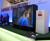 テレビ・ディスプレイ関係の展示は、まず110インチのD-ILAリアプロジェクションテレビが来場者を集めている。今年は最新のEUROサッカーの映像とともにデモ。もちろん今年も世界最大の家庭用テレビである。このモデルは欧州未発売であるが、発売待望論は高いという。さすがにサッカー映像に人だかりができる国である。そこがビクターが EUROサッカーをスポンサードしている最大の理由だろう。
