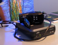 HDDビデオカメラ EverioのGZ-HD3(製品データベース)はこちらでも最新人気モデル。やはり専用 DVDライターCU-VD40 との組み合わせで展示デモが行われた。