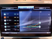 BDレコーダーをホームサーバーにしたネットワーク技術の参考展示も興味深い。携帯電話とレコーダーをインターネット経由で接続することで、レコーダーに録りためた映像を携帯電話で視聴したり、携帯電話で撮影した写真をレコーダーに送信してテレビに表示するなど、様々な連携を行うことが可能となる。デモ用に用意された携帯電話は、体脂肪や口臭などの健康データの計測が行える“ウェルネス携帯”。測定した毎日のデータをレコーダーに送信して情報を蓄積することができ、家族の健康状態をテレビで視覚的に確認することなどが可能だ。