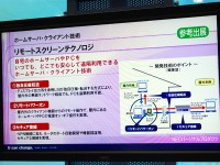 「リモートスクリーンテクノロジ」は、簡単に言うと、自宅にあるPCのディスプレイ表示をそのまま外出先で見ることができる技術。ディスプレイ出力信号をNEC独自の圧縮方法により圧縮し、既存のネットワークを介して対応端末で受信し表示、操作するというものだ。高い処理速度を持たないモバイル機でも、PCの性能をそのまま利用できるという点が特徴だ。