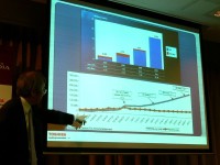 まず同氏は、今年1月のInternational CESでBDAが公表した、BDとHD DVDの需要予測を映し出し、「これによると、今頃の時点で、HD DVDはほとんどなくなっていて、フォーマット戦争は終わっている、というのが今年のCES時点でのBDAの予想だった。いつも言っているが、BDAはこういうことについてきっちりとした説明をする責任があるのではないか。じゃあ、最近の状況はどうなっているか」と述べ、北米でのHD DVDの最新状況について触れた。
