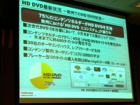また、HD DVDを搭載したPCが増えていることも強調。「現在、1,000ドル程度のPCにHD DVDドライブが搭載される例が増えている。これはドライブが安くなってきたことが原因で、4Qには20万台のHD DVD搭載PCが北米で販売される」とした。今後、PCにHDMI端子が搭載されることが増えることで、PCでのHDコンテンツ再生機会がさらに増えるとも述べ、「2008年にHD DVD搭載PC市場は500万台へ拡大する。これはかなりの確率でそうなる」とした。