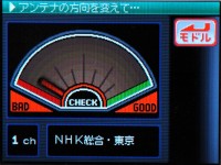 屋外でのテストでは、アンテナを延ばした状態ではほぼ安定した受信を行える。電車で移動している際には時々電波計表示で4本まで下がることもあったが、ワンセグ映像の表示は安定している。