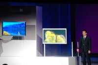 続いて坂本氏は、150インチの4K2Kプラズマテレビを発表した。尼崎の第5工場が稼働し次第、デジタルシネマや商業用途向けに発売するというが、一般消費者向けの販売も考えているという。坂本氏は、「これだけの大きさがあると、象などの動物を表示したり、相撲を見たりしたときに、非常にリアリティが感じられる。これでオリンピックの試合を見たらどんな感動が得られるだろうか? まさにリアリティTVだ」と自賛した。