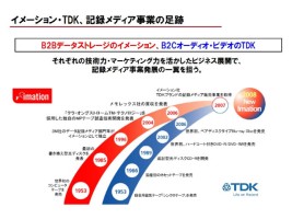 両社の足跡を見ますと、偶然にも1953年に、TDKは録音用磁気テープを、イメーションは世界初のコンピューターテープを発売し、以降、BtoBデータストレージのイメーション、BtoCオーディオ・ビデオのTDKとして、それぞれの地位を確固たるものにしてきました。