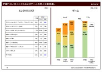 エレクトロニクス分野は、BRAVIAなどの増収により2兆694億円、前年同期比10.2%と二桁成長を達成。こちらも四半期として過去最高を記録した。この背景には、全地域で好調に売り上げた液晶テレビ“BRAVIA”やVAIO、主に海外で好評を博したサイバーショットなどの増収がある。しかし営業利益は1,665億円と、前年同期比-7.0%の減少。これについて大根田氏は、昨年よりラインナップを拡充し増収したものの、価格下落により減益に転じたBRAVIAなどを例に挙げ、「コスト削減を上回る価格の下落により、原価率が悪化したため」と説明した。