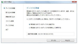 続いて、セットしてあるディスクメディアの認識が行われる。ディスクにすでに「Click To Disc」で作成したデータがある場合、追記を選択することもできる。すでにデータが書かれているBD-REメディアの場合、メディアを初期化して書き込むこともできる。