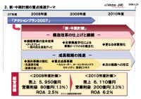 これらの状況を受け同社では、2009年までの新たな中期計画を策定。“構造改革の仕上げと継続”と“成長戦略の推進”の2つを柱として実行していく。同社が発表した今後の業績見通しでは、2008年度の売上高は5,950億円と10%程度減るが、その間に海外事業の強化や成長事業の具体化などを進め、2010年度に売上高6,110億円、営業利益200億円を目指す考えだ。