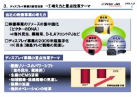 また、業務用の映像事業やD-ILAフロントプロジェクターなどにリソースを集中。D-LAプロジェクターは2009年以降、ハイコントラスト化や小型化を進め、民生用の4K2Kプロジェクターの開発計画も発表した。これらの施策により、ディスプレイ事業を2009年度に黒字化するという。