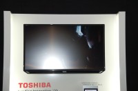 東芝からは同社の先進的な半導体技術を活かした、SD画質の映像からのハイビジョンアップコンバート技術を搭載した薄型テレビ、ならびにDVDプレーヤーが発表された。