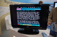 ドイツ国内では現在、仏独が共同運営するTVネットワークサービス「ARTE」がハイビジョン放送を製作し、ARDとZDFの両局に提供している。展示説明員によれば、視聴料金はARDのチャンネルでは無料だという。他のハイビジョン放送には“プレミア”という有料放送が開局している。