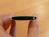 曲面を描くデザインはとても美しい。3Gのnanoが52.3W×69.8H×6.5Dmmの大きさで質量49.2g。これに対し4G nanoは38.7W×90.7H×6.2Dmmで質量36.8g。本体の大きさと質量の割合の関係もあって、軽い!薄い!という驚きがとても強かった。アルミ部と、ディスプレイ部のガラスとの段差もなくフラットだ。また、3Gのnanoは背面を鏡体仕上げとしていたが、4Gは表面/背面ともに同じ仕上げのアルミ合金を採用している。