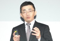 本日行われた発表会では、取締役執行役員常務 コンシューマ事業統轄本部長 高橋誠氏が登壇し、製品の説明を行った。同氏によると同社にアンケートを行ったところ、自室にテレビがあるというユーザーは82%に達しているのに対し、自室にPCがあるというユーザーは43,5%であったという。この結果からPCを持たないユーザーでもLISMOを使用できるサービスの提供を考えたのだという。記者にau BOXの一番の売りを訊ねられると「月額315円で、携帯コンテンツを利用する感覚でパソコンなしでLismoを利用できるところ」と回答。その手軽さを強調していた。